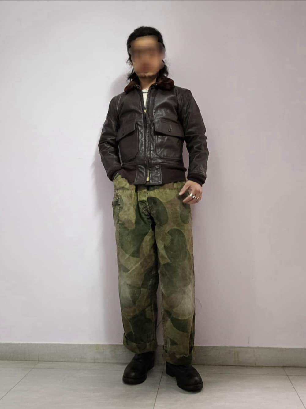 setaroのカーゴパンツ「1950s Belgian army brushstroke camo pants」を使ったコーディネート