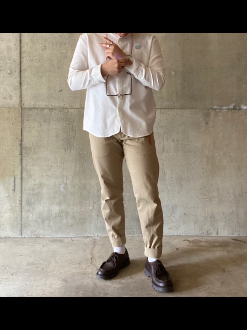 エスタのシャツ/ブラウス「【Beauty&Habit】ロゴ バンドカラーシャツ ノーカラー」を使ったコーディネート
