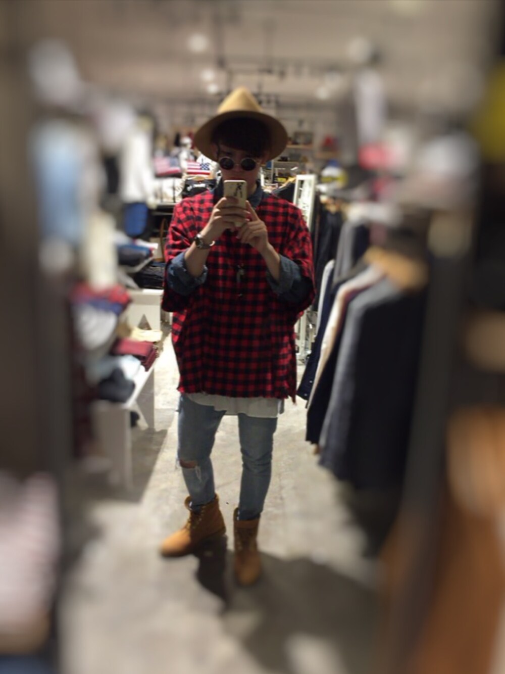 ブラウン系のブーツを着用したメンズの秋コーディネートの1枚目の写真