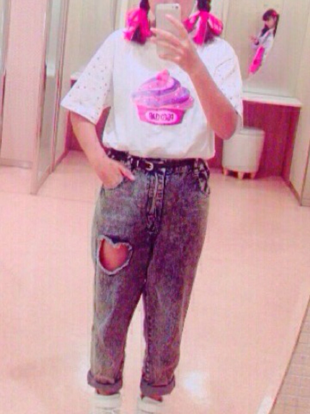 ガーリーになりすぎないようにデニムで少しボーイッシュにしまぴた(๑´• ₃ •̀๑)