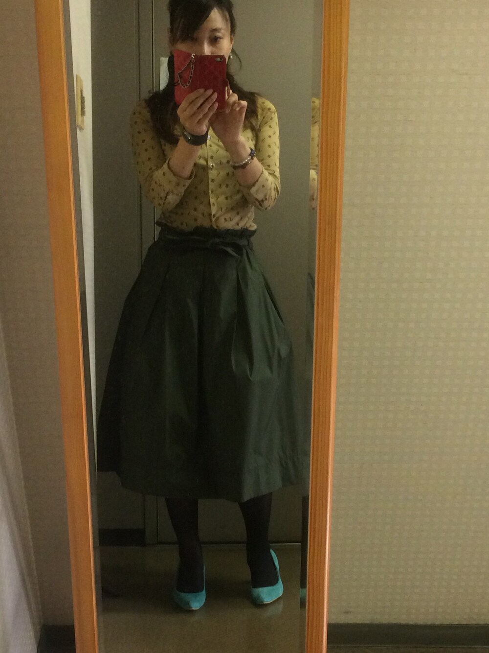 おはようございます☀ UNIQLOリボンスカート、まだまだ活躍しそうです💕❗️ シワにならなくて、優秀❤️💕