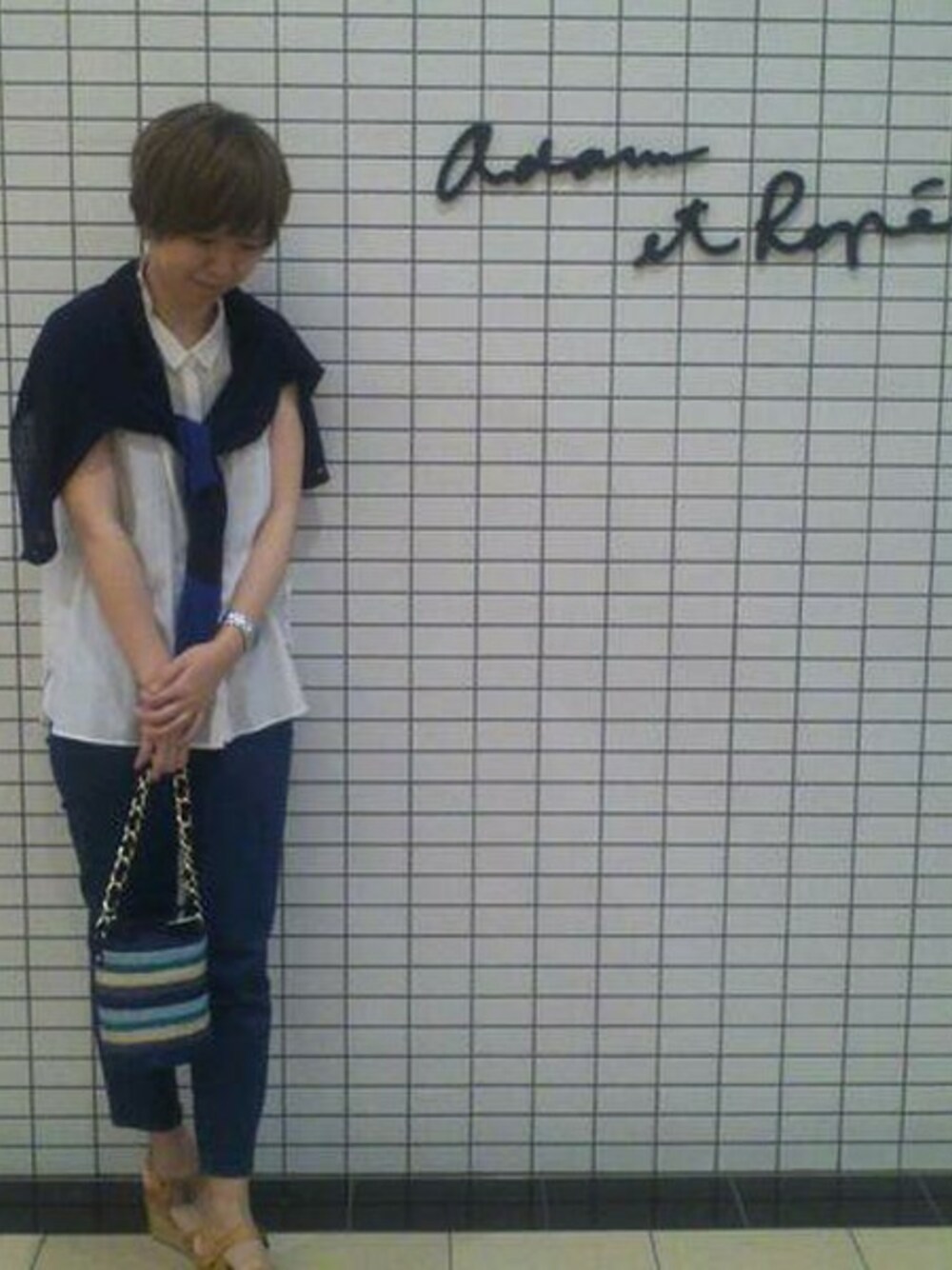 着丈の長めな柔らかいブラウスをアンクル丈のスキニーデニムで合わせて、よりすっきり見えるコーディネートにしました。
