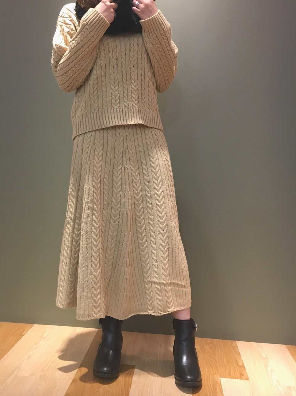naoのスカート「・K ケーブルニットフレアスカート*」を使ったコーディネート
