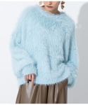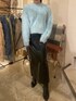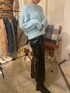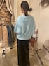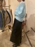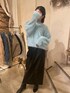 鮮やかなザ・水色のモコモコニット🩵 肌触りが良くてずっと触っていれる! スカートは黒にして引き締めてみたよ👌