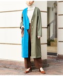 Settimissimo(Settimissimo Official)のノーカラーコート「ボアポケット ノーカラー 配色デザインコート」を使ったコーディネート
