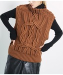 Settimissimo(Settimissimo Official)のベスト「デザインケーブル編み ボトルネック ニットベスト ジレ」を使ったコーディネート