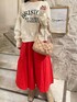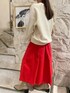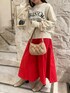 赤いスカートをカジュアルっぽくするためにトレーナーと小物をベージュでミックスしてオシャレにしてみたよ👀 デートコーデにも決めすぎないからオススメ❣️