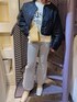 今の時期このくらいの羽織がベスト! アクセントに黄色の小さいバックを添えてみたよー🌙 今の季節を楽しむファッションをなうで着たい!!!