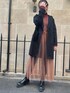今年トレンドのチュールは 難しいそうでなんでもコーデに合う 万能な洋服✌️ 同系色を中きて黒ジャケットを羽織って 気分はモード系