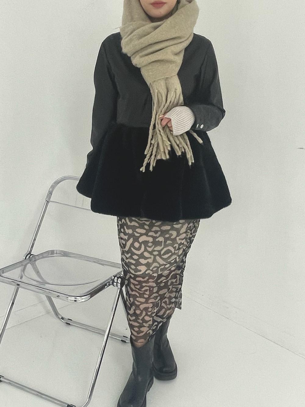 シアーだけどスタイル良く見える レオパード柄のスカートがお気に入り🙋♀️
