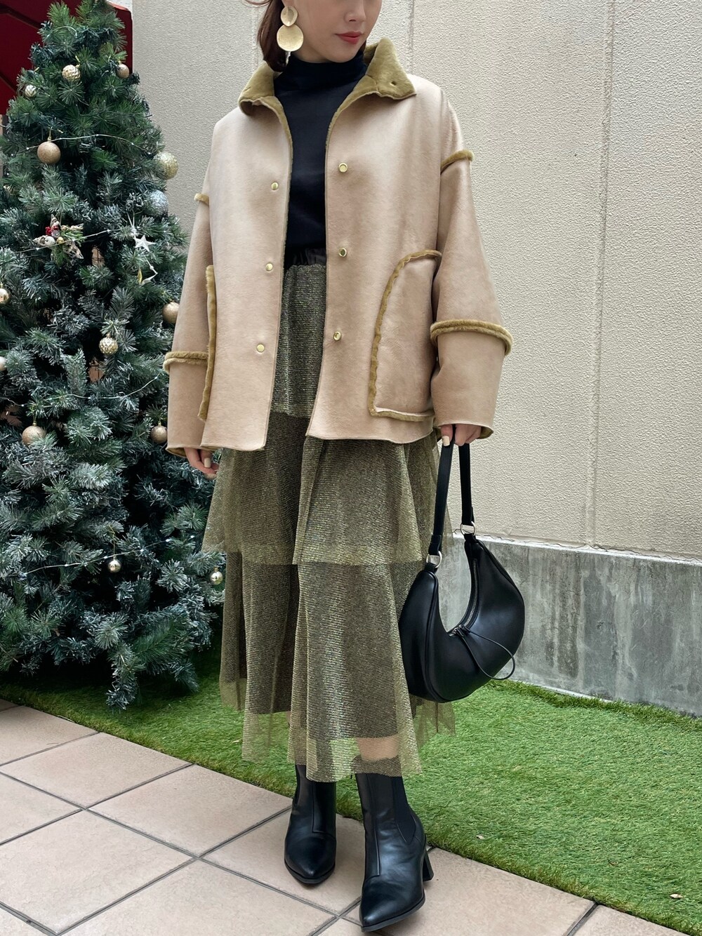 ゴールドを貴重としたコーデ👑 クリスマスマーケットにぴったり🎄 歩くたびにスカートが揺れて激かわ🩵