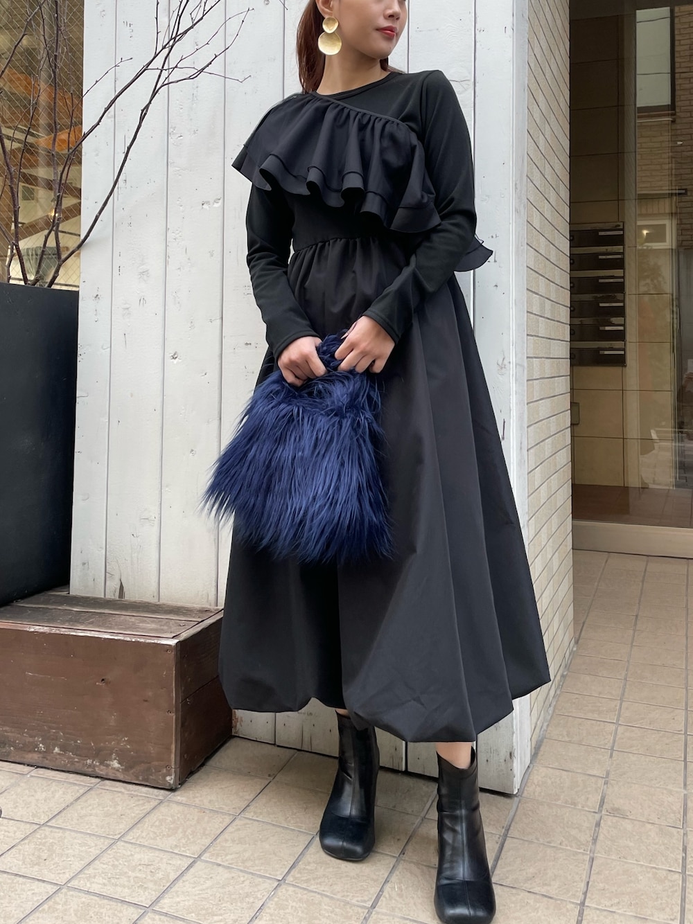 Settimissimo(Settimissimo Official)のハンドバッグ「ロングヤーン フェイファー ハンドルバッグ スモールバッグ」を使ったコーディネート