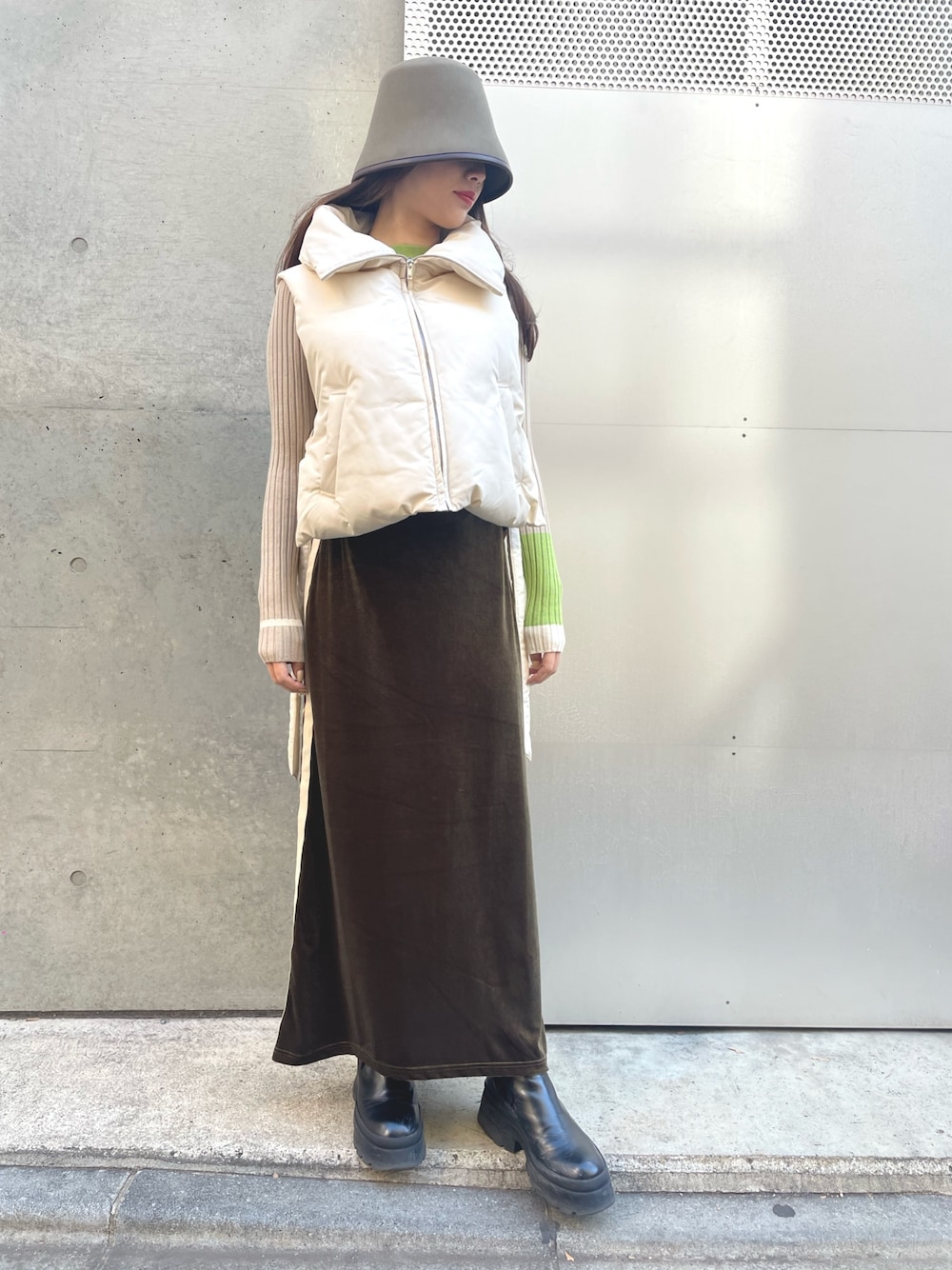 Settimissimo(Settimissimo Official)のスカート「サイドライン ベロア Iライン スカート」を使ったコーディネート