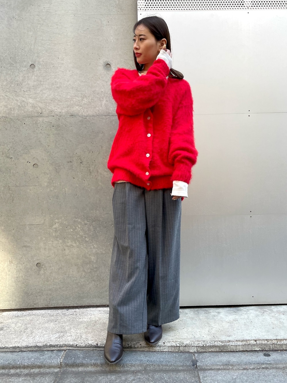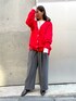 赤ニットを主役とした コーデを組んでみたよ❤️ グレーのストライプワイドパンツを 合わせて大人っぽく🎶 カジュアルを意識してみました!