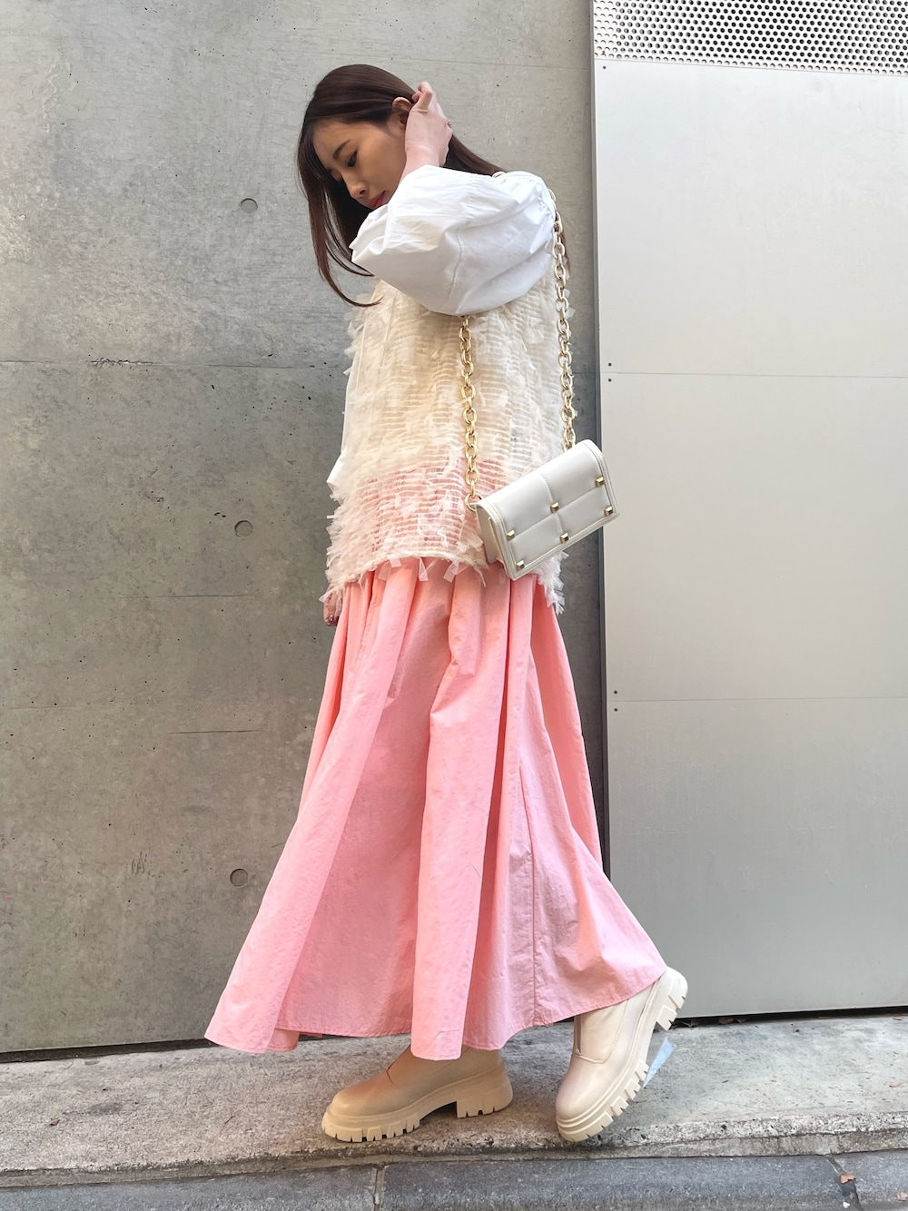 Settimissimo(Settimissimo Official)のスカート「タフタ ギャザー フレア マキシ丈 スカート ロング」を使ったコーディネート