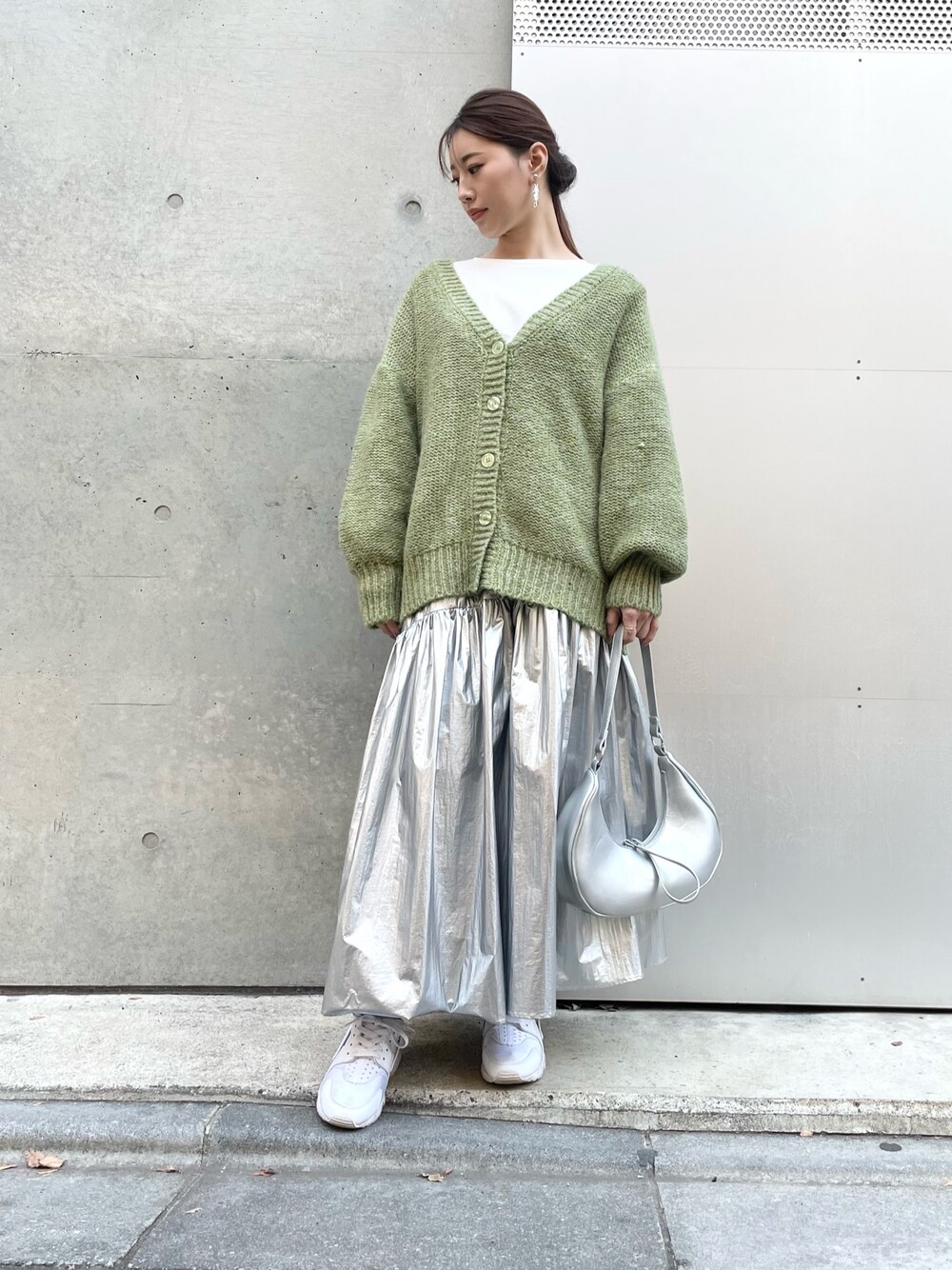 グリーン×シルバーメインの コーディネート💚🩶 カジュアルかつトレンド感満載!!!
