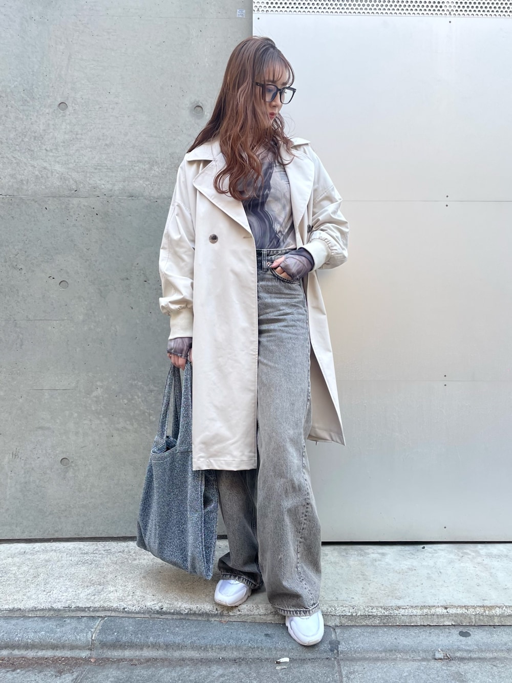 楽ちんコーディネート👓 スニーカーにデニムにトレンチコート 中のトップスはかなりモードな かっこいい感じにしてみたよ📚