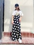 大胆な水玉模様のロングスカートが 映えます🩵 カジュアルにTシャツに帽子と スニーカーで合わせてみたよー🌈