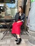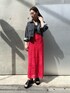 存在感ある赤いレースの柄スカートに Gジャンを合わせてカジュアルスタイルに🍓