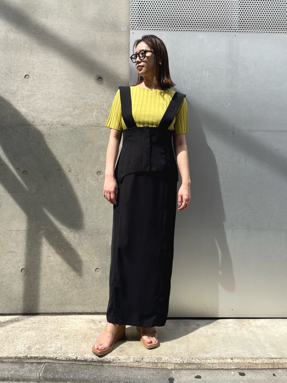 セットアップに黄色のリブ素材の Tシャツを合わせて よりモードスタイルに!!!