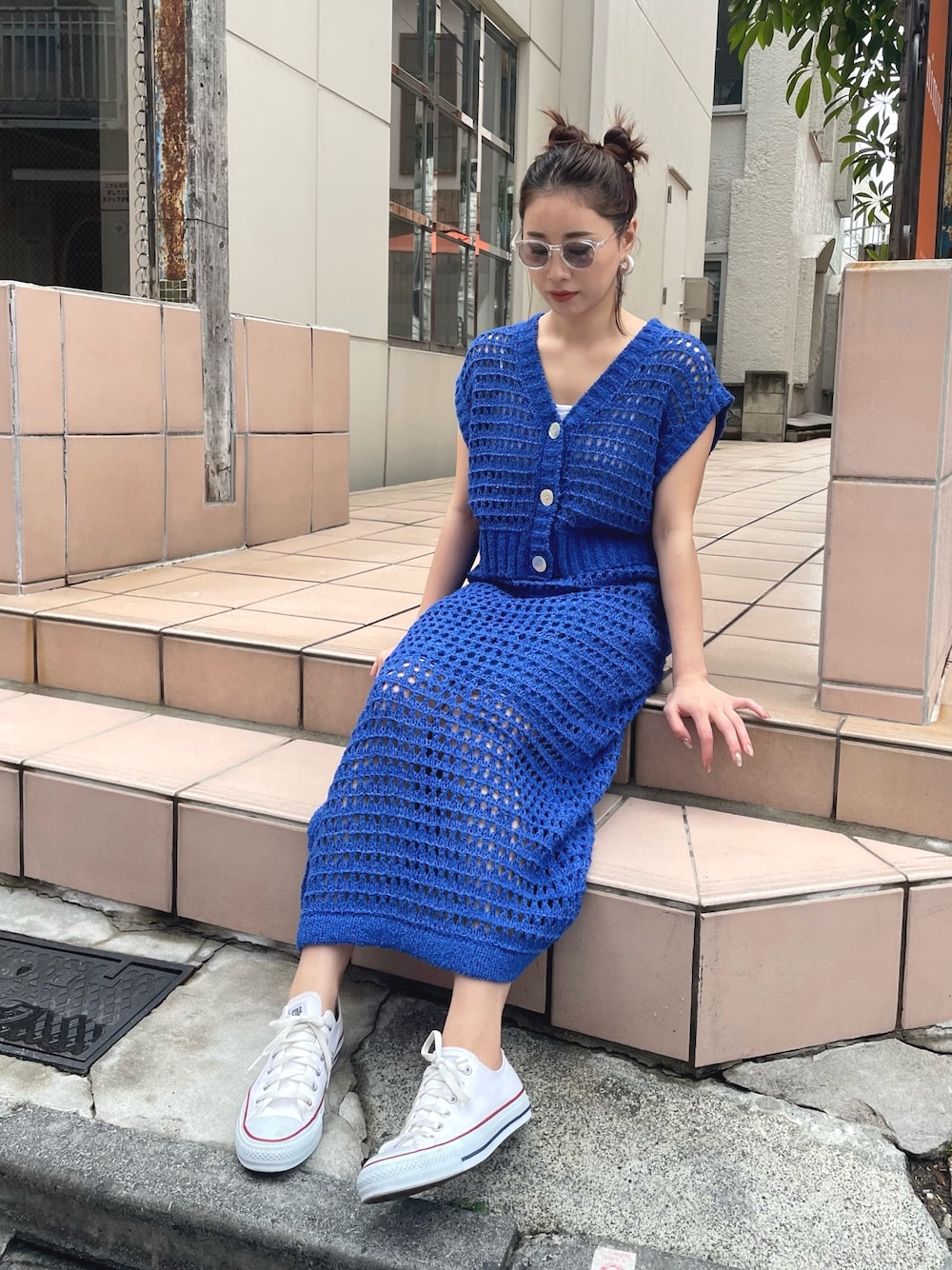 ブルーのセットアップ💙 パキッとブルーなので存在感抜群! 透け感が夏っぽさを演出してくれる🍉