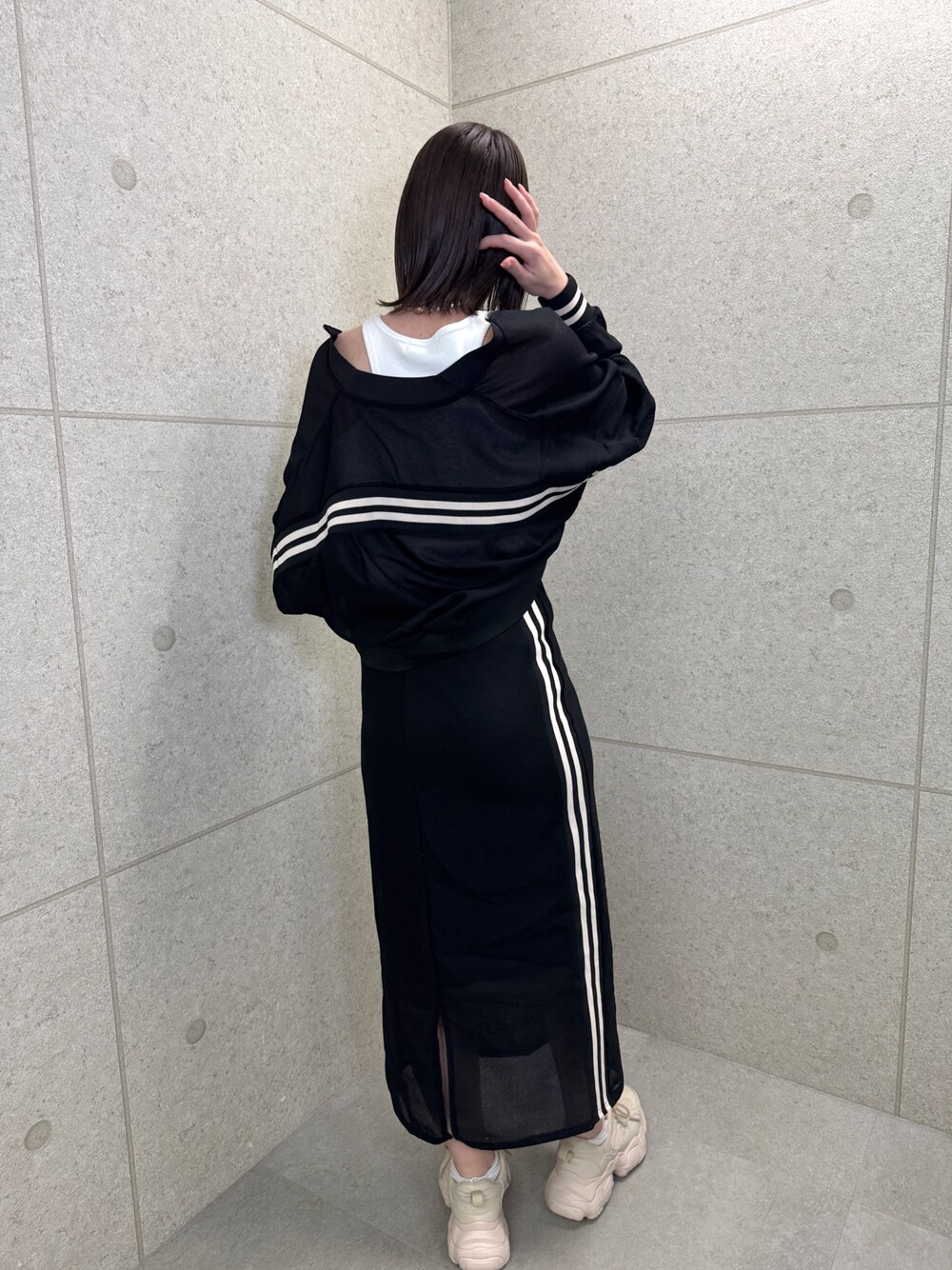 Settimissimo(Settimissimo Official)のスカート「サイドライン カノコ メッシュ ナロー スカート」を使ったコーディネート