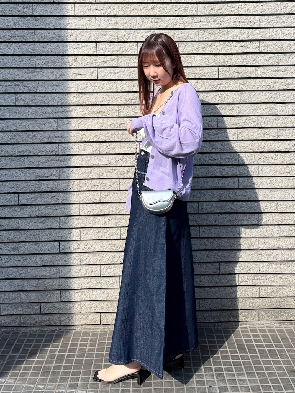 パステルカラーが可愛い! 春のおでかけコーデ! マンネリ化しやすいデニムスカートの合わせとして色物のカーディガンはいかがでしょうか♪ ボタンにもこだわっておりますので高見えします◎
