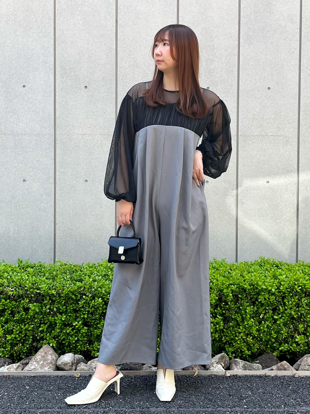 異素材の切り替えデザインが大人可愛いオールインワンです! ワイドなサイズ感が体型をすっきり見えするポイント! お出かけの際に是非。