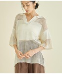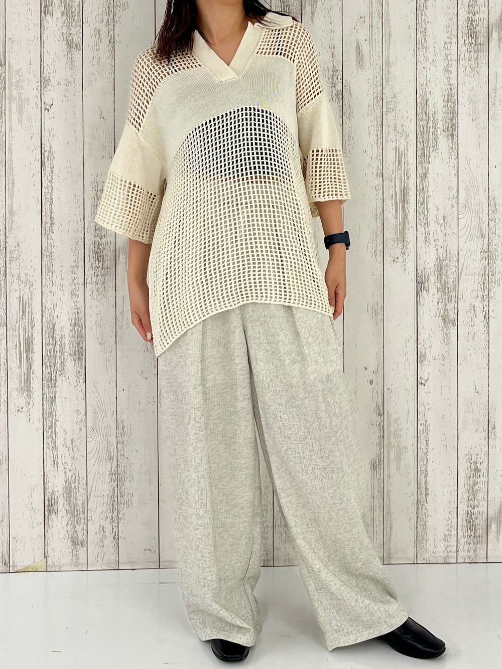Settimissimo(Settimissimo Official)のTシャツ/カットソー「スクエアメッシュ ポロカラー ハーフスリーブ プルオーバー」を使ったコーディネート