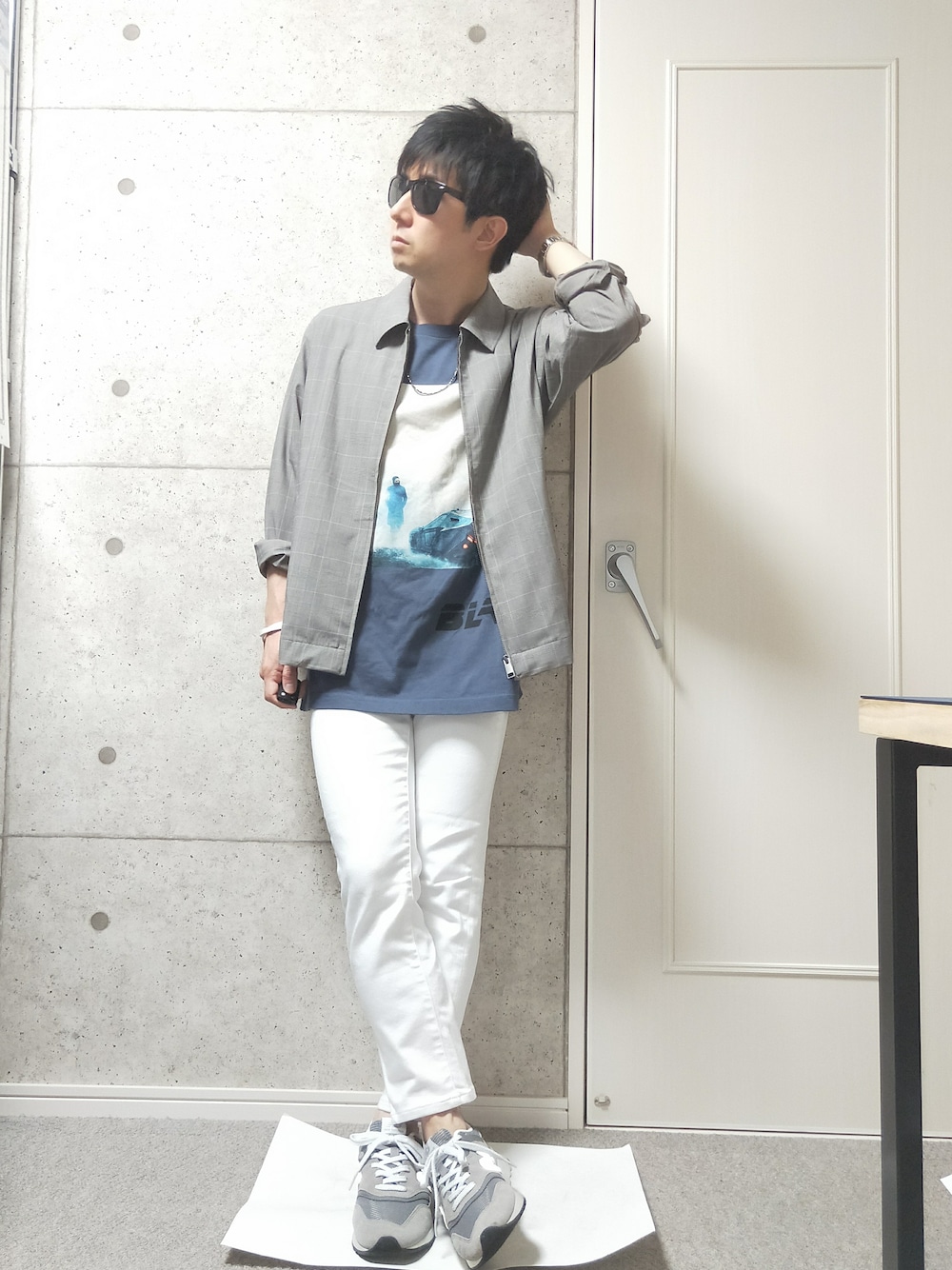 今日は少し暑さが和らいだので、スイングトップを羽織ってみました。インナーはUTのプリントTシャツでLサイズです。淡い色でちょっと古着っぽく着られるかなと思い買いました。白スキニーを合わせて全体的に爽やかしました。
