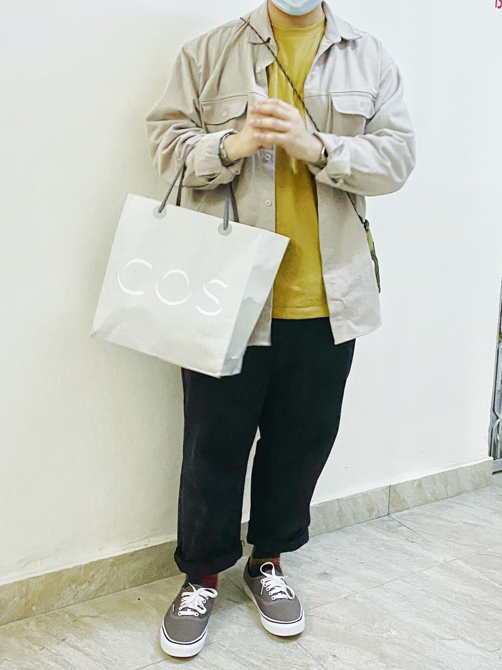 ゴールド系のTシャツ/カットソーを着用したメンズの冬コーディネートの1枚目の写真