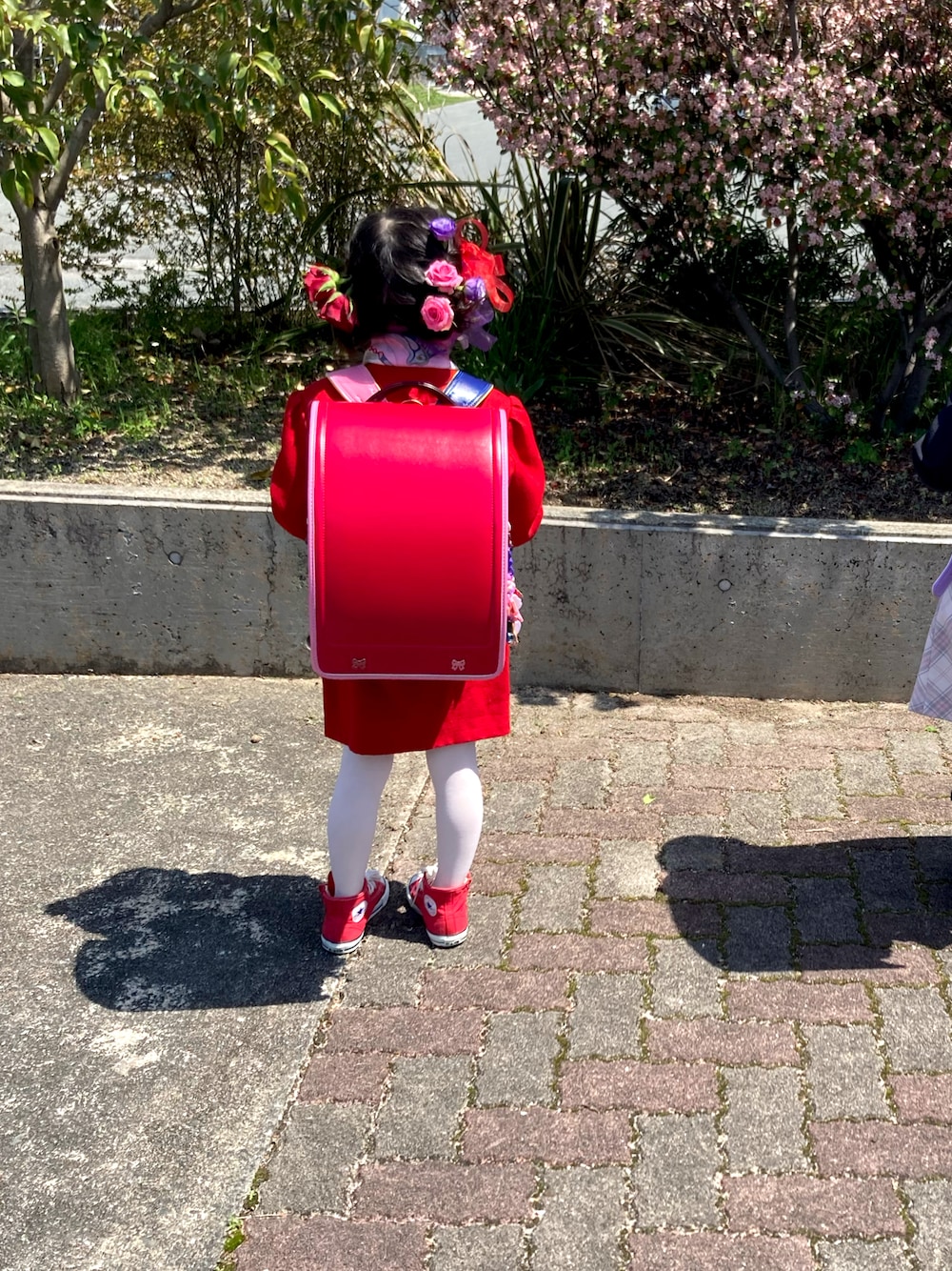 . 入学式コーデ後ろ姿♡ ヘアセットの生花がポイント🌷