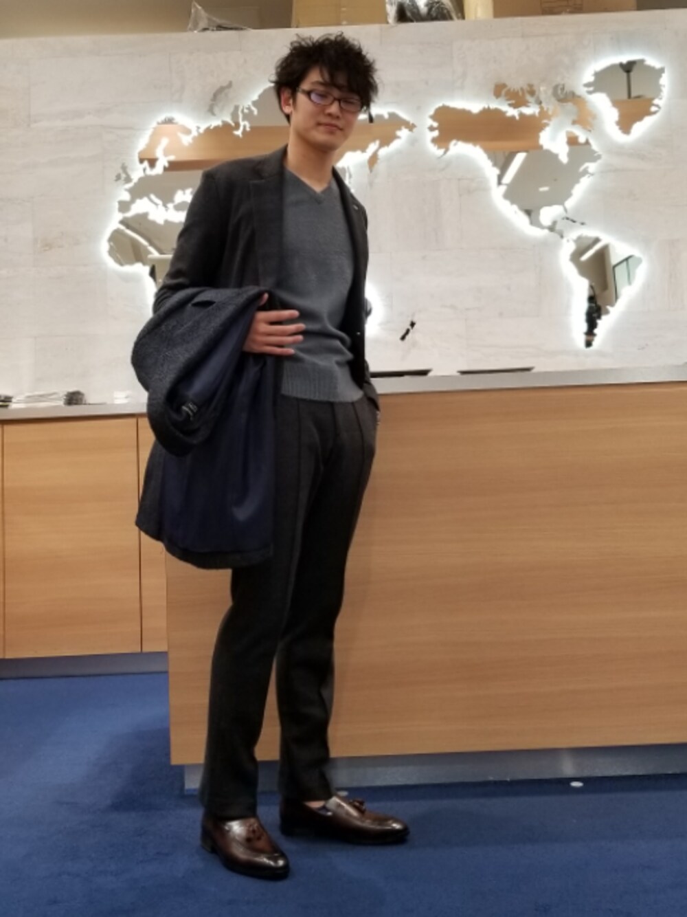 ジャケパンスタイル、コート着た写真もアップしてます