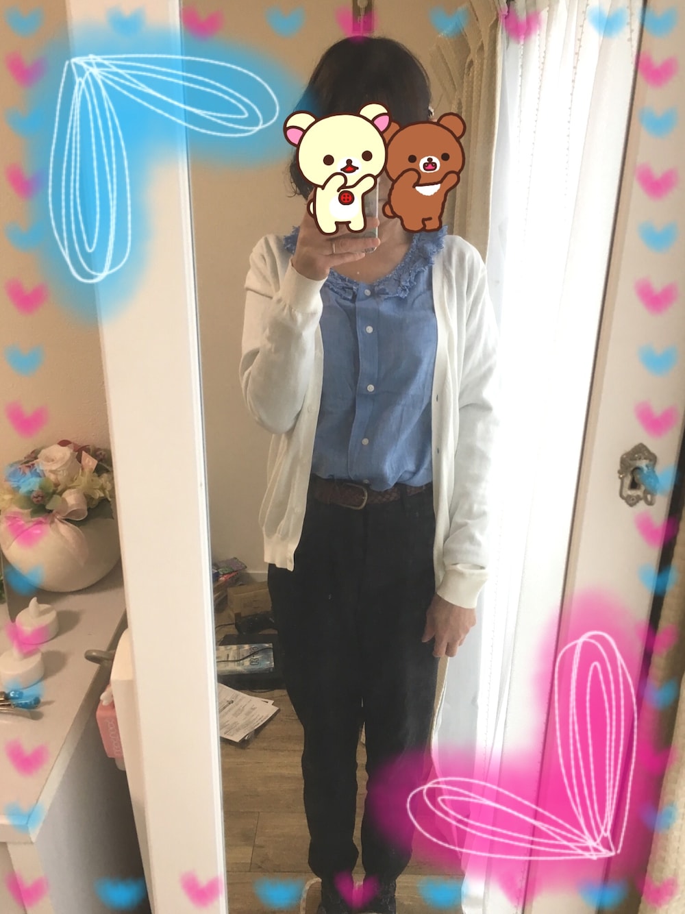 シャツ:Samansa Mos2 カーディガン:UNIQLO パンツ:通販 靴:MINNETONKA リュック:marimekko UNIQLOのカーディガン、ホントにお世話になってます(♡˙︶˙♡)