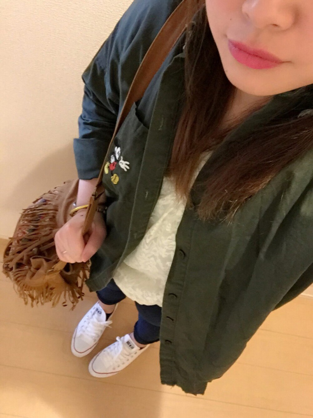 春の薄着コーデ♡ シャツのミッキー可愛い( ̄▽ ̄)