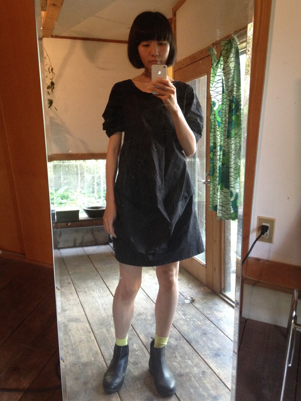 黒のマルニの変形ワンピースに、黄色いソックスで色を足してみました。 ワンピース MARNI 靴 ザラのサイドゴア 靴下 tabio
