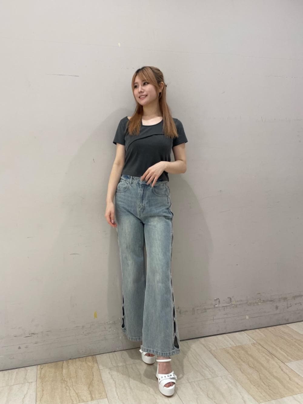 kaori(SPIRALGIRL 仙台PARCO店)のデニムパンツ「サイドオーバルホールデニム」を使ったコーディネート
