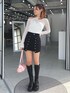ピタッとしすぎず伸縮性もあるレーストップス✨デコルテも出てすっきり見えるのでムチっと感が出ず骨ストの私でも着太りして見えなかったです😳ショートパンツはハイウェストで若干Aラインなので脚も綺麗に見えてオススメです🫶