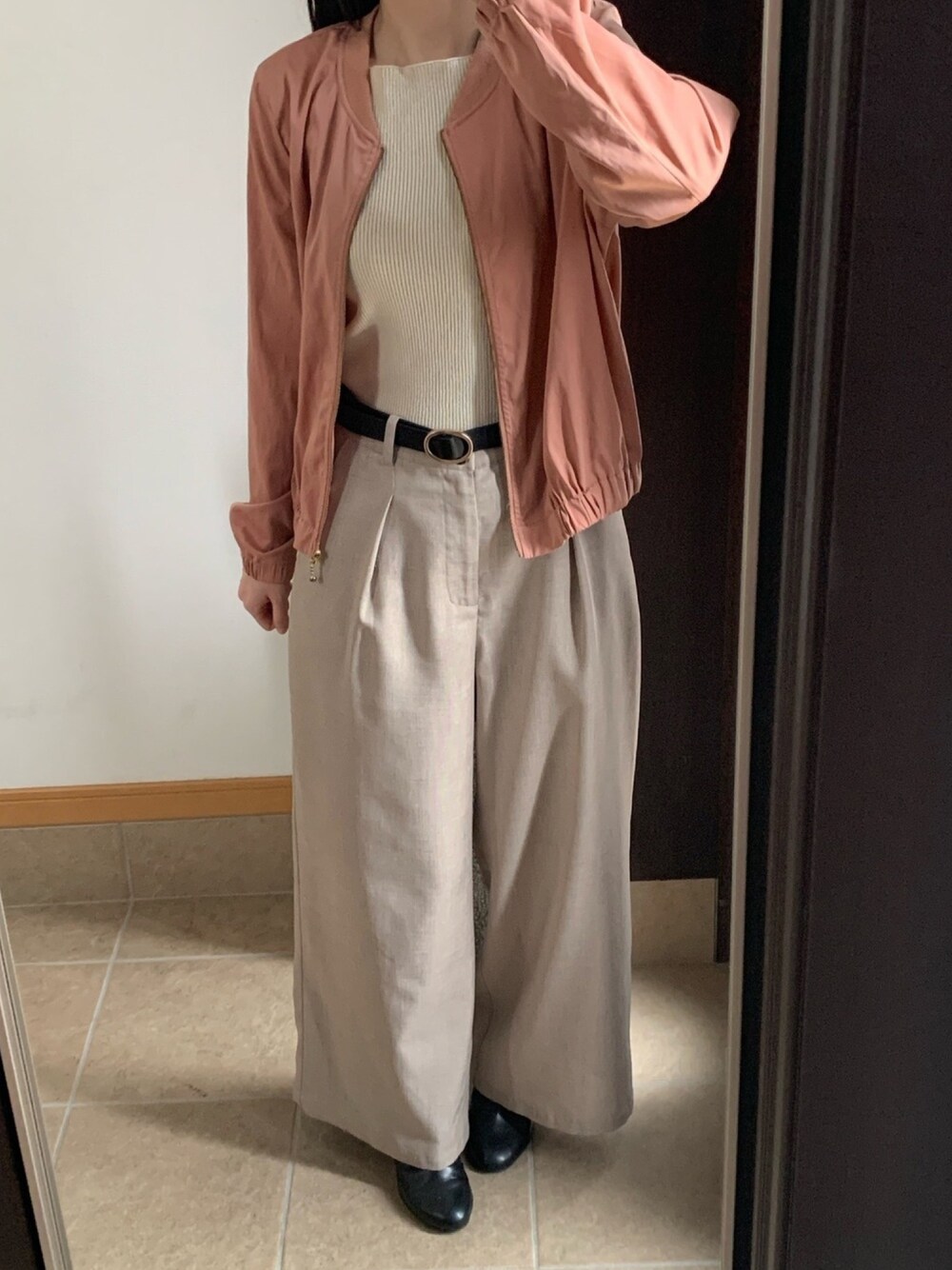 2020.10.18 もうコメントするほどのことでもないコーデ。笑 元々色物と合わせられる用に入れてくれていたものをただ合わせただけなので、羽織りは何しようとか考える必要がない。ラクすぎる。笑 ベルトとロペのブルゾンは私物。