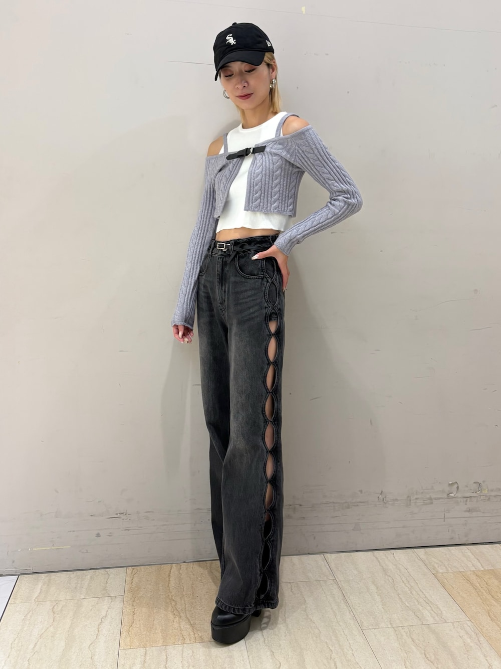 risa(SPIRALGIRL 仙台PARCO店)のデニムパンツ「サイドオーバルホールデニム」を使ったコーディネート