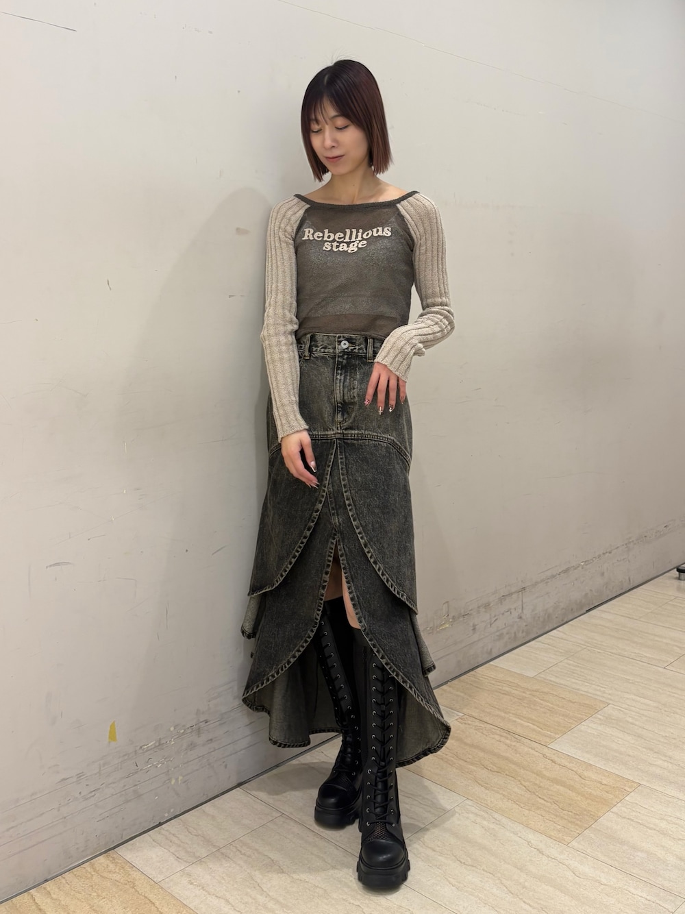 risa(SPIRALGIRL 仙台PARCO店)のデニムスカート「デニムフレアスカート」を使ったコーディネート