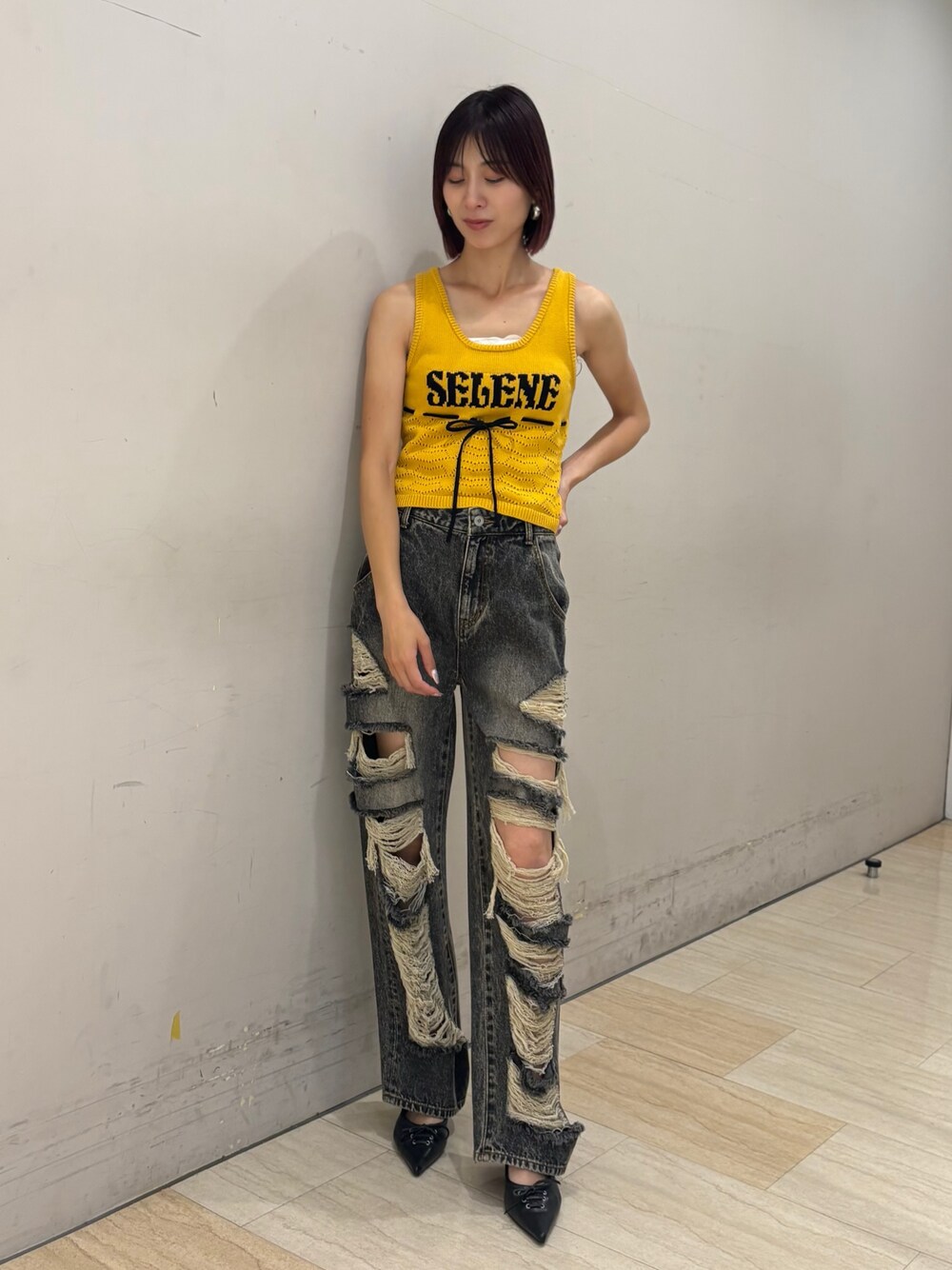 risa(SPIRALGIRL 仙台PARCO店)のデニムパンツ「クラッシュワイドデニム」を使ったコーディネート