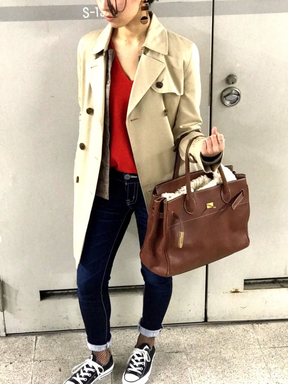 ootd お世話になった方から頂いたバッグを持ちたくて 茶色とか初めて持った ピアスはzara インナーダウン着たのに トレンチコート寒いな