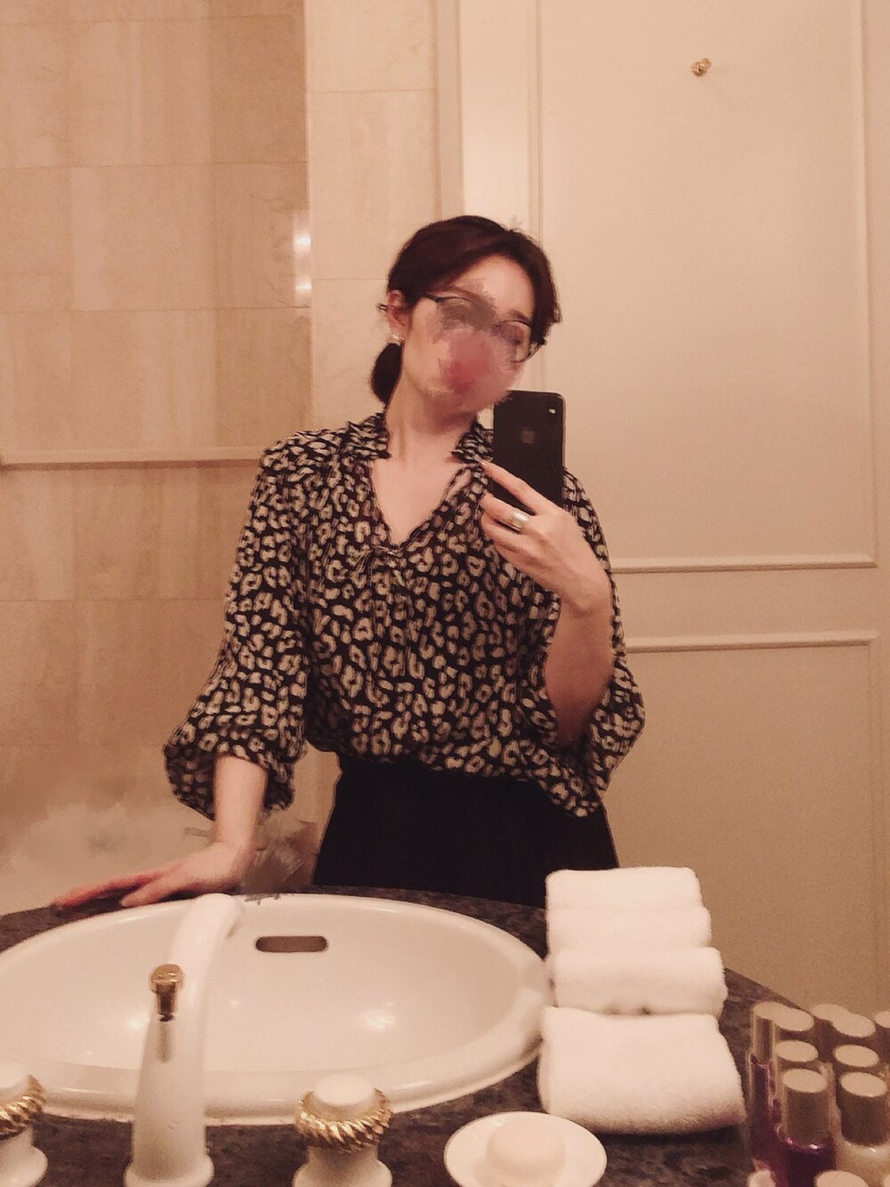 東京のホテルにて 随分前だけど🗼 シャツにお団子でカジュアルに🖤
