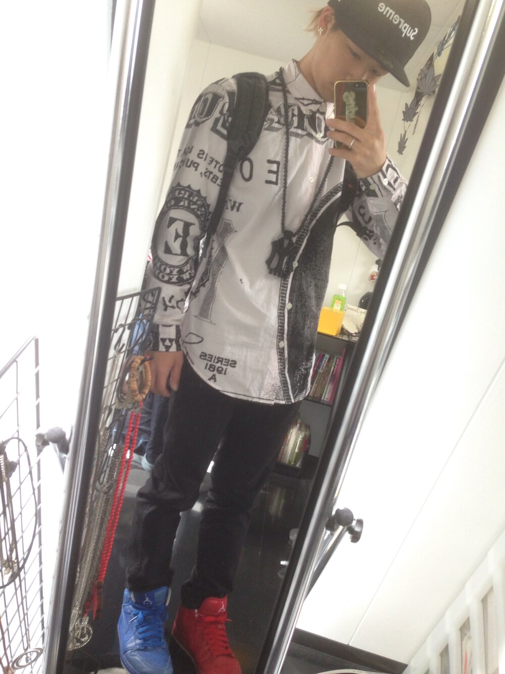 一度やってみたかったバカ履きに挑戦。 キャップ:Supreme シャツ:Supreme パンツ:Levi's シューズ:AIR JORDAN 1