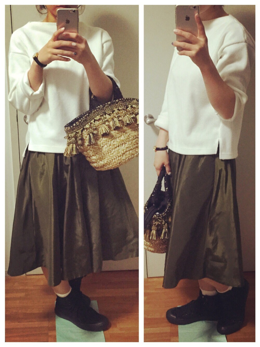 ♡、save、フォローありがとうございます!!☺︎ 今日はこの前着たリバーシブルスカートの反対側、カーキ側で着てみようと思います♡♡ こっちはほどよい光沢があって、ポケット付いてますっっ! いいですね~丈も好きですね~^ ^ 真っ黒コンバースと合わせました♡ ---- 昨日ネイルしにいってですね、バンダナ風にしました‼︎‼︎あー可愛い! 自己満です!他の爪のOWはクリアをたっぷり混ぜて、ふんわり少し透けてる感じにしてもらいました♡