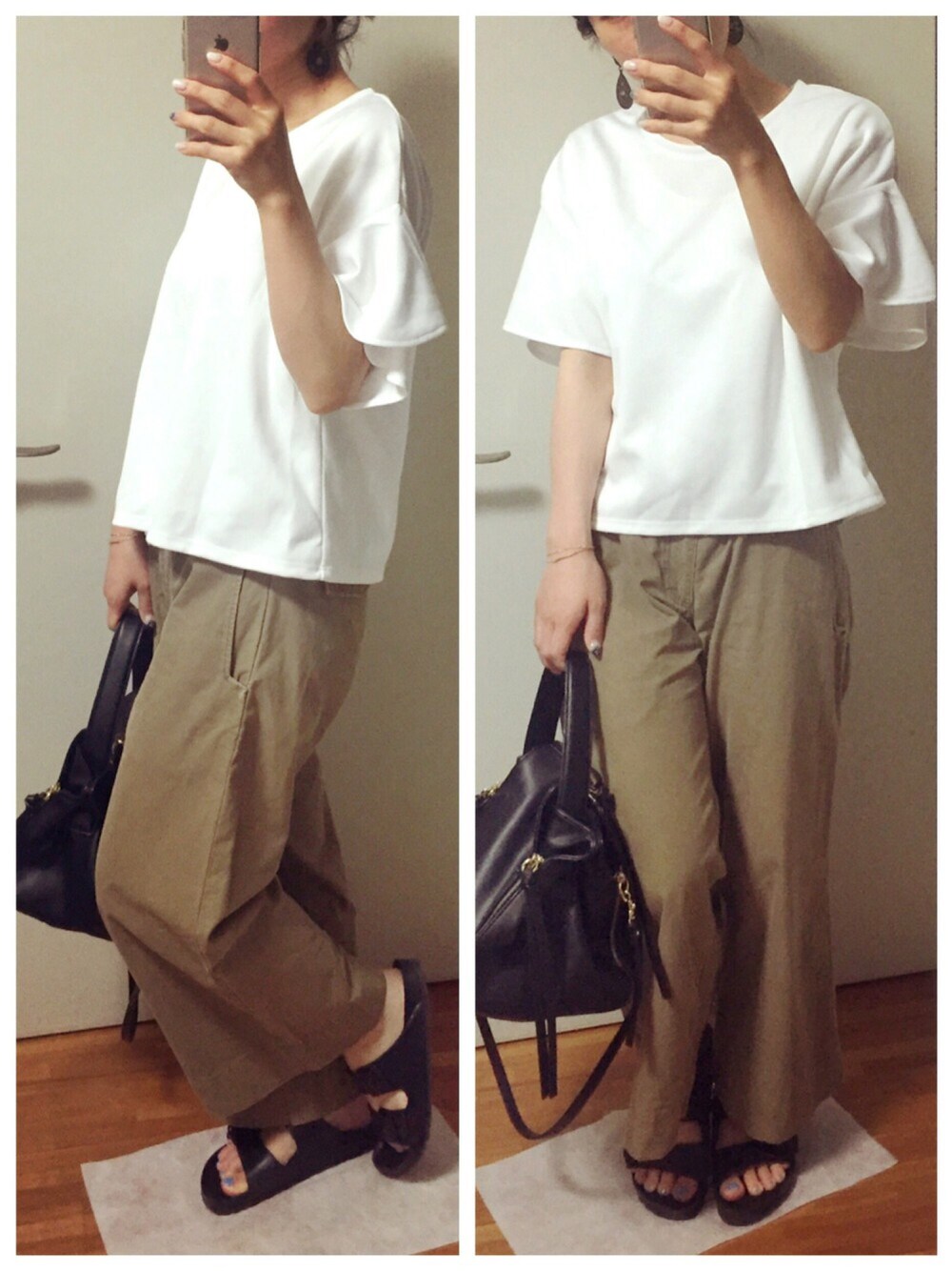 見ていただき、♡、save、フォローありがとうございます‼︎☺︎ 連投失礼します–。 袖口がフレアのTシャツにワイドパンツ、ビルケンのサンダル。 ゆるい。ゆるゆるすぎる。 バッグもゆるーくしたら良かったな(´・_・`) ピアスはアジアンな雑貨店で購入しました☺︎