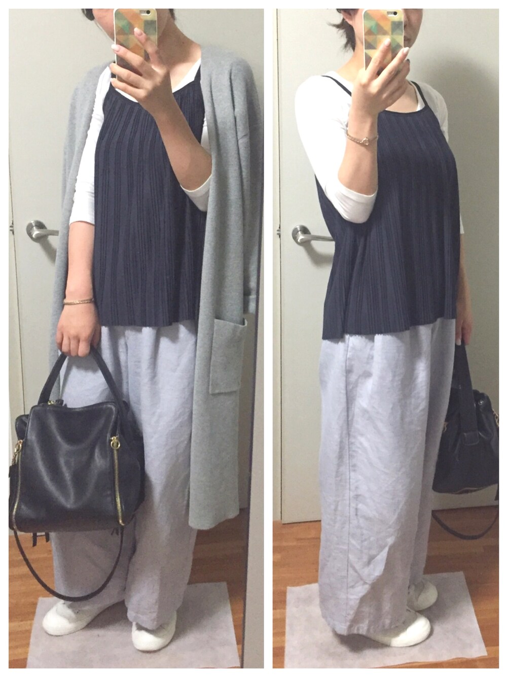 見ていただき、♡、save、フォローほんとにありがとうございます‼︎(*^^*)♩ またまた雨ですね(´・_・`) 昔に買ったキャミソール。 プリーツになってるんです♡ だいぶ久しぶりに袖を通しました☺︎ ぱっと見、パジャマに見えかねない…… カーディガンをちゃんと羽織るとゆるすぎて、ゆるゆる通り越してパジャマですね、これ。。
