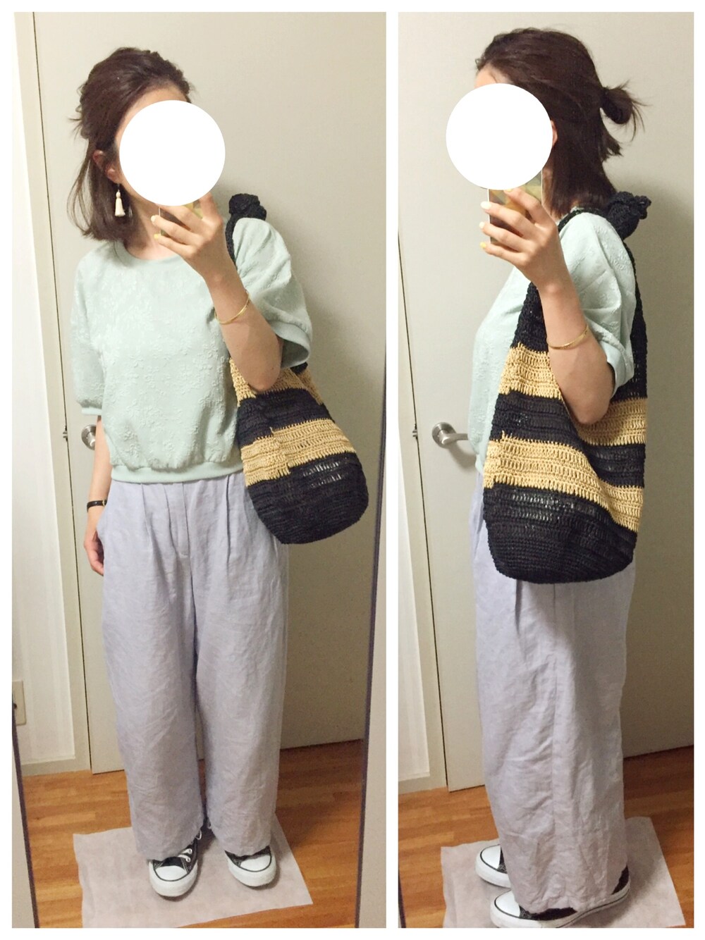 見ていただき、♡、save、フォローほんとにありがとうございます‼︎‼︎(*^^*)♡ ミントグリーン×ライトグレーの淡い組み合わせ♡ 背景と同化しそう(´・_・`) ハーフアップのおだんごにしてカジュアルさ倍増です◎☺︎