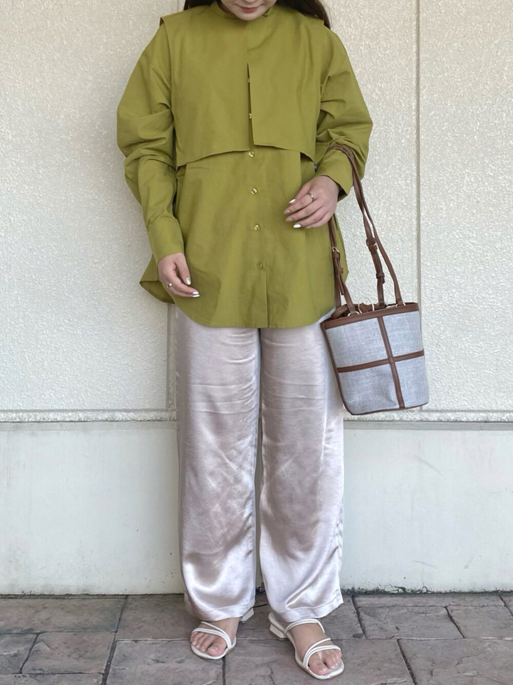 こちらはグリーンの色味が可愛い ベストセットシャツです🏷✨ デザイン性のあるシャツなので、 1枚でさらっときるだけでおしゃれな コーディネートになります!🌿